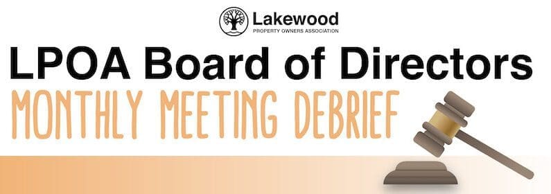 LPOA Board of Directors Meeting Debrief November 13, 2025 LPOA & LHC Board of Directors Monthly Meetings | December 11 • January 8 • February 12 | 6:30 PM at the Lakewood Oaks Clubhouse View the official minutes from the October meeting by clicking here: LPOA | LHC Consent Agenda…