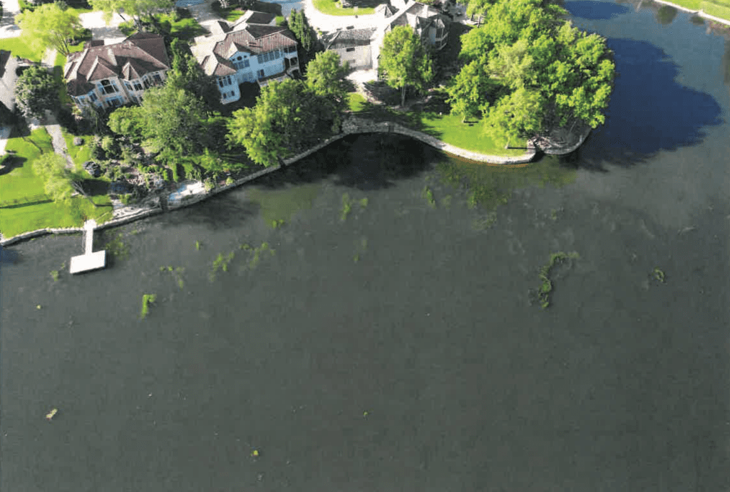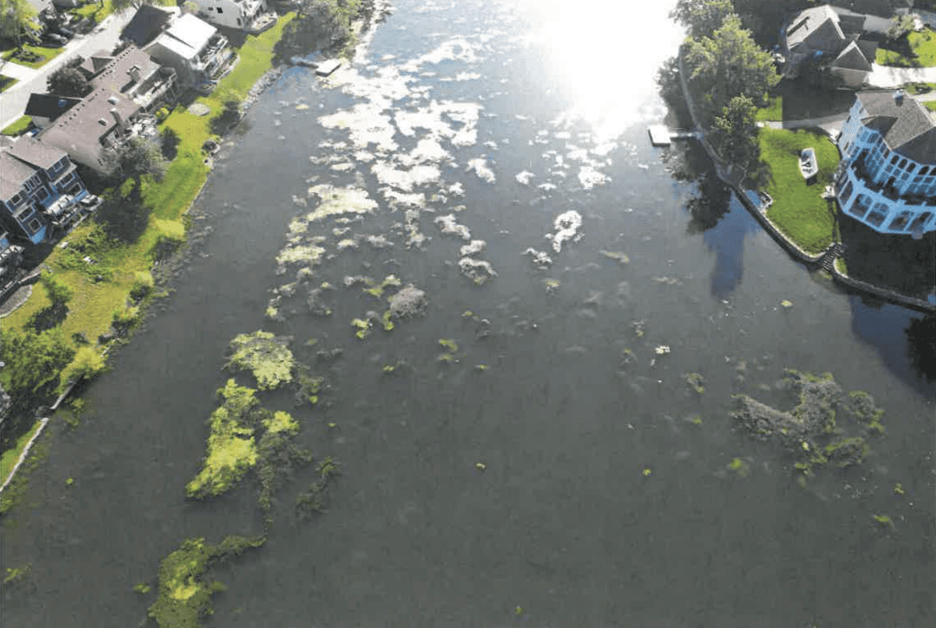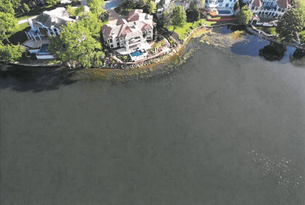 We treat in sections to maintain healthy levels of oxygen in the lake. Depleting the oxygen from the lake too quickly can lead to a fish kill and throw off the balance of the ecosystem in the lake.