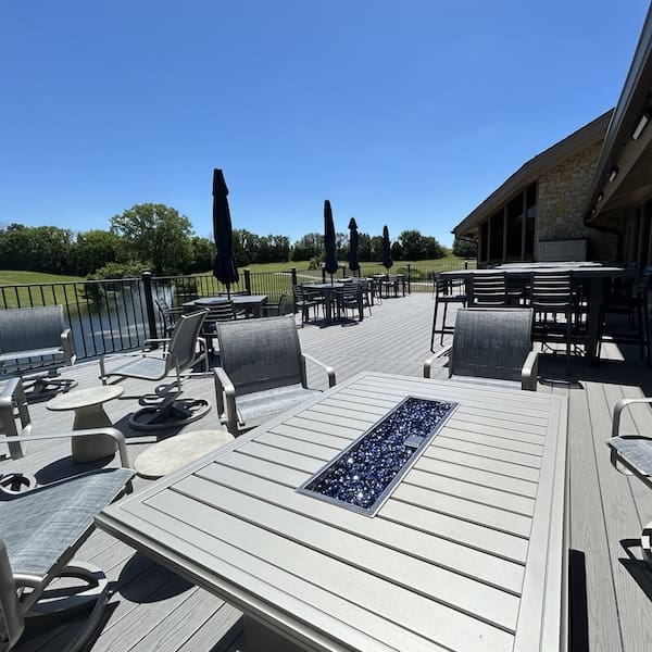 The Oaks Terrace is located on the upper level of the Lakewood Oaks Country Club, on the deck attached to the building overhanging the cart path. Kick your feet up and enjoy a cold drink and deck exclusive bar fare while overlooking Hole #10.